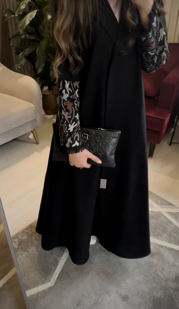 القصة كلوش + تطريز اكمام + ياقه+ طرحة سادة